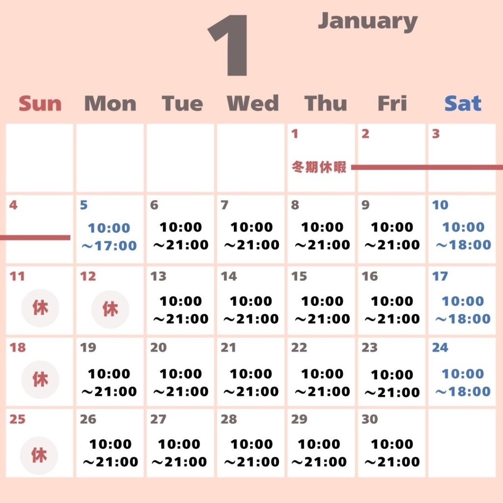 📅【2026年1月のスケジュール公開】📅